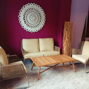 Conjunto en Madera y Cuerda – Sofá 3 Plazas, 2 Sillones y Mesa